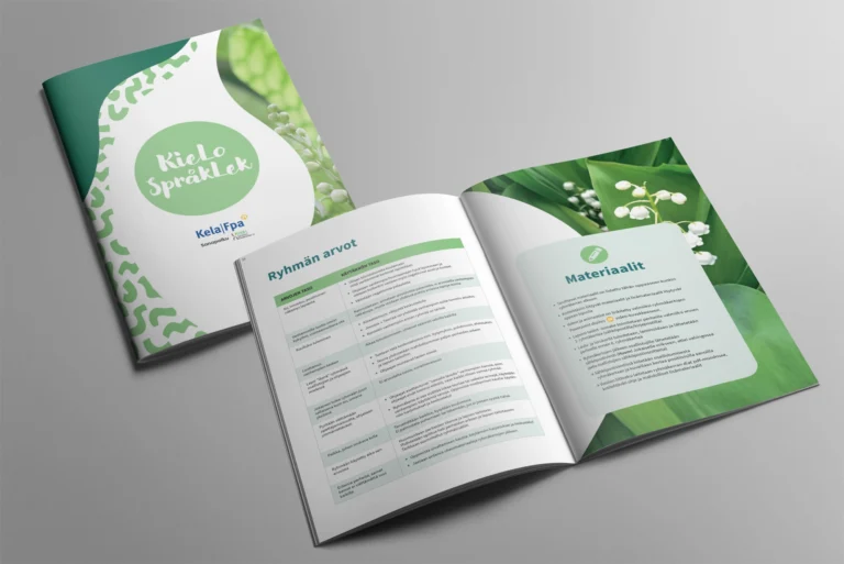 Kielo -hankkeen loppusilaus: Projektihenkilöstön tuottama materiaali yhtenäistettiin ja taitettiin niin fyysisiin kansiin kuin myös powerpointtiin.